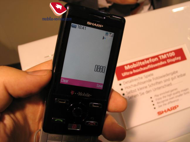 Sharp TM100 на CeBIT 2004 – уникальный телефон бизнес класса, новый хит продажCeBIT 2004. Все материалы. Оглавление Компания Sharp известна своими мультимедийными раскладушками, которые интересны качественными экранами, использующими технологию CG Silicon (подробнее об этой технологии вы можете прочитать в обзоре Toshiba e800). В большей мере данные аппараты были ориентированы на имиджевый сегмент, соревнуясь с изделиями корейских производителей. Первое, что бросается в глаза это сходство дизайна с моделью Sony Ericsson T610. Такое же лакированное покрытие, похожий дизайн. Но адаптация дизайна была проведена искусно, аппарат имеет свое лицо. Более того, вы видите только управляющие клавиши, цифровой клавиатуры нет. Загадка разрешается легко, в телефоне есть слайдер, две половинки разъезжаются, обнажается клавиатура светло-серебристого цвета. По этому решению телефон также напоминает Т610, в нем использовалось то же сочетание цветов. Аппарат хорошо лежит в руке (100х49.9х19.2 мм), он неожиданно легкий, масса в 95 грамм не чувствуется, телефон так и тянет назвать сбалансированным. Вся задняя часть аппарата серебристого цвета, взгляд на устройство с этой стороны показывает, что у вас в руках маленькая камера, но никак не телефон. Если приглядеться к камере на задней части аппарата, то вы увидите, есть два положения рычажка – нормальная и макросъемка. На европейском рынке это первый аппарат с такой возможностью, если не принимать во внимание Sharp GX20.