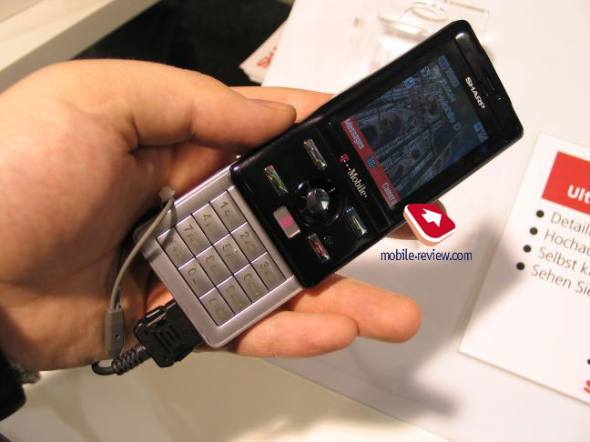 Аппарат поддерживает Java, MMS, работает в трех диапазонах. Есть встроенный почтовый клиент, объем памяти составляет около 2.5 Мб которая динамически распределяется между всеми приложениями. Полифония в аппарате 40-тональная, звучит она хорошо. На стенде говорили о том, что поставки аппарата начнутся в июле, стоимость аппарата в сети T-Mobile с годичным контрактом составит 89 Евро. В свободной продаже модели не будет, но телефоны все равно будут продаваться со снятой блокировкой T-Mobile. Стоимость таких аппаратов составит порядка 400-450 Евро. В данный момент мы можем говорить о том, что у компании Sharp получилась крайне интересная модель, как по качеству экрана, так и по качеству исполнения других функций. Она приятна в обращении, хотя ей и не достает большего объема памяти, bluetooth. Тем не менее, найдется целый ряд пользователей, которые не нуждаются в данных функциях, но ценят стиль, дизайн, эргономичность. Признаюсь честно, что за последнее время настолько положительных впечатлений от первого знакомства с аппаратом было не так много, пожалуй, наиболее сходные примеры, это Sony Ericsson T610, K700. Напоследок, приведем несколько фотографий Sharp GX30, о нем мы говорили в репортаже с 3GSM Конгресса.