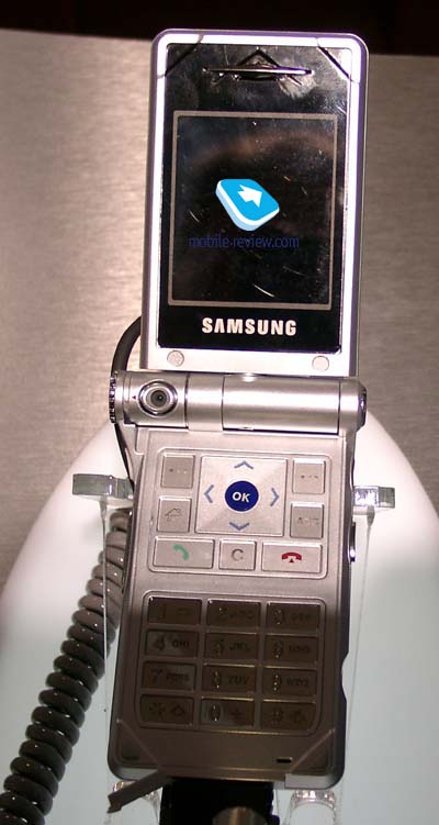 The last place, which I could visit, was Samsung’s booth. Later we’ll tell about it more elaborately, but now you can view several photos and read short comments. A culmination is a new smartphone, based on Symbian, which is called D700. The screen is rotated in all directions; you could even put it over a keypad. Unfortunately, there were no working samples; probably they will be available in two days.