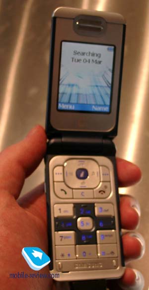 The company launches a unique service. Any subscriber can dial a special phone number and sing a melody, the system will find an original melody among 1.6 million of records (for today) , plays it back and give you a name of the singer and album title. Certainly, it’s an operator dependable service and the model of the phone doesn’t influence it. Now you won’t suffer if you remember a tune but forget a singer. The other nice service is Vodafone-StreetGuide. It enables to receive maps to orient. Unfortunately, no word was said about the realization of this idea. Next press conference was Nokia’s one, where the company unveiled new products and technologies. Even before the conference, there were many discussions about the number of new models. Most were right, the company announced only two new phones, which are, by the way, only revised versions of old models. I don’t want to say about them now because tomorrow I will be able to try them and share my opinion. It’s necessary to add that probably the company will introduce new models in the end of spring. Evidently, CeBIT is not a reason now to introduce new products. We noticed that there were many disappointments after this presentation. On the one hand, journalists have less to do, on the other – everybody expect more from the leader. After that I tried to attend a similar meeting organized by Logitech, but I wasn’t in time. So I took press kit and decide to see more novelties. So, the next booth, which I attended, was Panasonic’s booth. I tried to find their several new models, but I succeed to find only one phone (only dummy in fact). It was promised that in the evening a real prototype of X70 will be available, but I didn’t wait for it. This handset resembles a popular Panasonic GD87 by shape, full specification are not known yet, but according to the information, which was written on the poster, it’s almost a copy of GD87. The main changes are improved camera and a new external display orientation, may be there is something else but it’s better to wait for a real prototype.