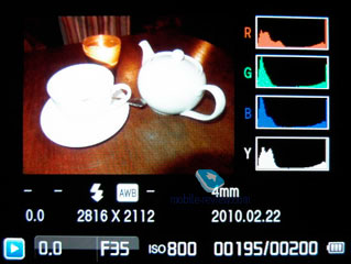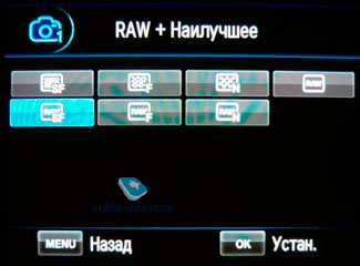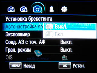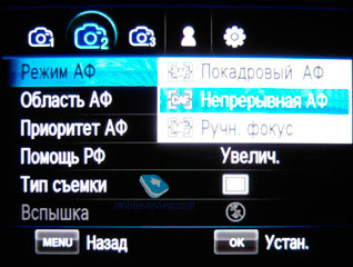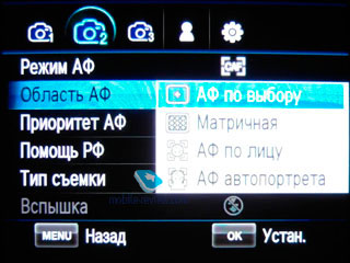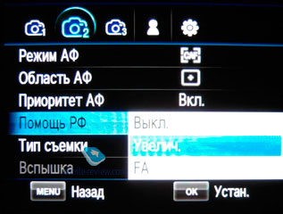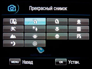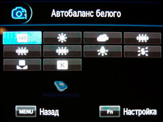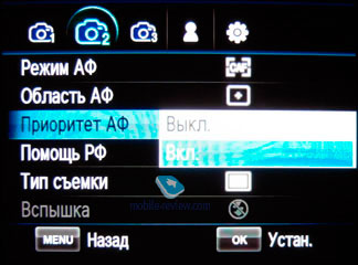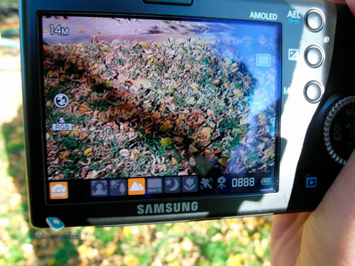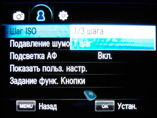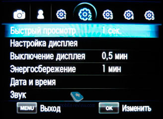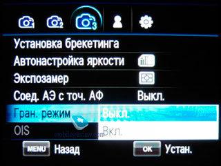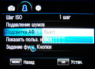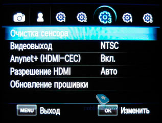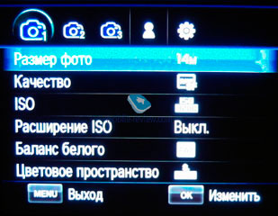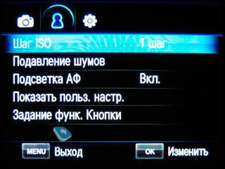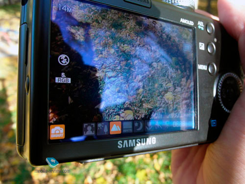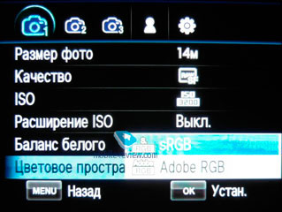 Интерфейс и функциональностьГрафический интерфейс камеры не претерпел существенных изменений и совпадает с таковым в NX10. Как я уже говорил в обзоре Samsung EX1, фотоаппараты от Samsung по этому критерию самые удачные для массового потребителя – красивые иконки, хорошая по сравнению с конкурентами локализация интерфейса, анимация. Конкуренцию могут составить только аппараты от Sony. Пожалуй, осталось только поработать с сокращениями и определиться, в каком случае слово начинается с заглавной буквы. Меню аппарата, с одной стороны, простое, что, конечно же, хорошо, с другой - выполнено в темных тонах, что не может не сказаться на читаемости при ярком солнечном цвете. Обратите внимание на размер шрифта – он довольно крупный. Настройки привычны – дата, время, качество фото, его размер и так далее, но отдельно хочу упомянуть возможность выбора цветового пространства (Adobe RGB, sRGB). Режимы съемки: