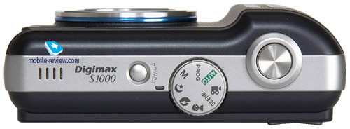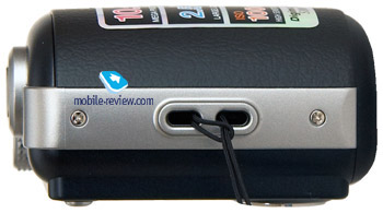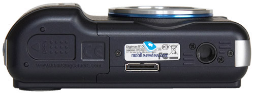 На верхней грани, помимо элементов управления, расположено гнездо динамика. Громкости недостаточно, чтобы воспроизводить звук в шумных местах. На нижней грани камеры, помимо крышки батарейного отсека, расположено гнездо для штатива (пластмассовое) и разъем для подключения к внешним устройствам.