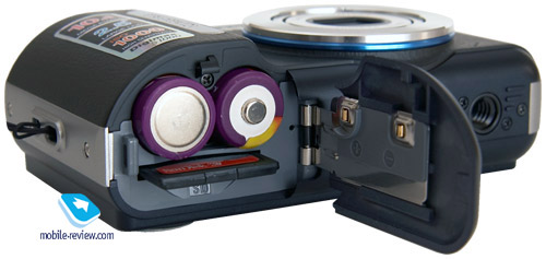 Приятно, что у обеих камер на передней панели присутствует лампа подсветки автофокуса. Сюда же вынесены отверстия микрофона. Места расположения вспышек не совпадают. У S1000 она находится в углу, в то время как у ее напарницы ближе к центру. Далее внимание к рукоятке, которая, по сути, является батарейным отсеком. Открывается с нижнего торца. Здесь же расположен слот карты памяти. Как таковых нареканий к этой части конструкции нет. Единственный момент, который следует отметить, – осторожность при эксплуатации. Придется проявить разумную аккуратность, чтобы не сломать пластмассовый язычок или ушко, которые служат для фиксации крышки.