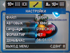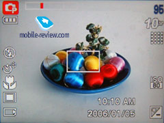 Необходимо отметить хорошую функциональную загруженность всех элементов управления. Начиная с первых моделей S-серии, присутствует клавиша «E», отдаленный аналог «f» у Fujifilm. Она инициирует переход в меню специальных эффектов. Если, например, сравнивать подобное решение с тем, что предлагает та же Canon (кнопка «func» c длинными списками функций), то подобная привязка небольших групп настроек к одной клавише выглядит более привлекательной. У нынешнего лидера индустрии (Canon) свалены в одно меню и эффекты, и функции управления съемкой. Samsung же разделила все, что касается творчества, и пункты, связанные со съемкой (вызывается клавишей «+/-»). Русификацию камеры нельзя назвать идеальной: если к правильности перевода претензий нет, то к отображению имеются. Длинные слова просто обрываются без соблюдения правил языка. Зато от знакомства с руководством по эксплуатации самые позитивные впечатления: удобно пользоваться, информация изложена доступно даже для тех, кто и в технике, и в фотографии разбирается не достаточно хорошо. МенюВ целом система отображения графической информации фотокамер S-серии оставляет неплохое впечатление. С точки зрения оформления, все значки крупные и хорошо читаемые. Цвет используется довольно осторожно. Им отмечаются наиболее актуальные элементы. Объективности ради стоит отметить, что прорисовку самих иконок чуть упростили, по сравнению с V-серией Samsung. В режиме съемки на экране отображается информация о состоянии карты памяти, режиме работы вспышки, заряде батареи, качестве снимка.