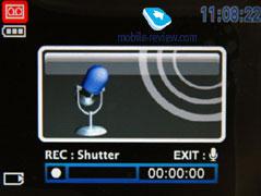 Прежде чем говорить о встроенных эффектах, уделим внимание записи звука и видеосъемке. Диктофон доступен из любого съемочного режима. Для этого достаточно дважды нажать верхнюю стрелку джойстика, появится новое меню, и можно вести звукозапись. Формат – WAV (11.025 кГц, 8 бит, моно). Субъективно хочется чуть более высокой чувствительности микрофона, нежели та, что установлена производителями камеры.