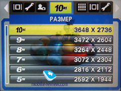 В меню выбора разрешения снимков производители напротив каждого проставили общее значение мегапикселей. Мелочь, но позволяет легче ориентироваться в настройках.