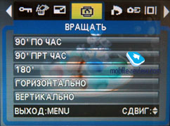 Отдельно необходимо отметить возможность использования оптического зума во время видеозаписи. С оговоркой, что на время работы мотора трансфокатора прекращается запись звука. Формат записи видеоданных – MPEG 4. У Samsung S700 – MJPG. Таким образом, старшая модель позволяет более экономно использовать место на карте памяти за счет большей компактности видеоданных. В то время как клипы в формате MJPG более пригодны для дальнейшего редактирования и обработки, но значительно больше по объему. А сейчас поговорим о том, чего не хватает для комфортной работы. Недостатков не много, но они есть. Например, отсутствует звуковой сигнал подтверждения фокусировки. Ориентироваться приходится только по цвету центральной рамки фокусировки. Даже в режиме просмотра снимков нельзя увидеть гистограмму изображения. Возникает вопрос к разработчикам: если уж добавили функцию ручной установки экспозиции, то почему не дали инструмент оценки ее правильности? В завершение этого раздела стоит уделить внимание программным функциям обработки снимков. Условно их можно разделить на две категории: первые доступны во время съемки, вторые – в режиме просмотра. Последних не так уж много, все они в основном касаются кадрирования и трансформации кадров. Это необходимо для прямой печати изображений. Они доступны в меню просмотра.