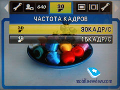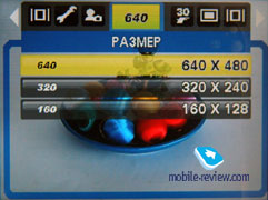 Видеосъемка может вестись как со звуком, так и без (время записи определяется объемом доступной памяти). Размеры кадра – 640x480, 320x240, 160х128. Частота кадров – 30 кадр/сек, 15 кадр/сек.