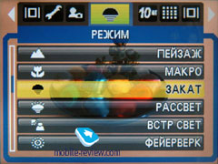 Питание. Классическое для бюджетных камер питание от двух пальчиковых AA-батарей. Возможности подключения сетевого блока питания нет. В качестве некой альтернативы производитель предлагает пользоваться комплектом принадлежностей SCC-S8 (зарядка с помощью специальной подставки). Функциональные возможностиНесмотря на то, что камеры рассчитаны на новичков, в их арсенале есть необходимый запас возможностей для тех, кто желает самостоятельно контролировать процесс фотосъемки. Обо всем по порядку. Основная часть сюжетных программ (Пейзаж, Текст, Макро, Закат, Рассвет, Встречный свет, Фейерверк, Пляж & Снег) доступны в режиме «Сцена». Для их использования необходимо установить колесом вышеупомянутый режим, а затем в меню выбрать желаемый пункт. Однако разработчики поместили сюда не все программы. «Ночь», «Портрет», «Дети» вынесены отдельно на управляющий диск.