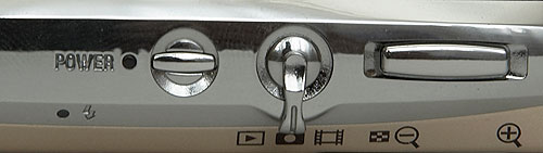 Камеру можно активировать двумя способами: сдвинув шторку и открыв тем самым окошко объектива, либо нажав кнопку включения, которая расположена на верхнем торце камеры. Рядом с ней расположен стильный трёхпозиционный рычажок переключения режимов (по порядку: «просмотр», «фотосъёмка», «видеосъёмка»). Конечно, выполнен он весьма оригинально, но в работе возникают неудобства. Дело в том, что позиция «фотосъёмка» находится по середине, и установить его в это положение большим пальцем не всегда удаётся (проскакивает на режим «видеосъёмка») в силу миниатюрности конструкции.