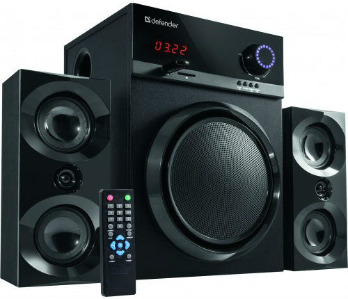 Для удобства управления настройками воспроизведения в Defender Avante X50 BT предусмотрен информационный дисплей, на котором отображаются режим воспроизведения, название трека, уровень громкости и тембра, а при прослушивании радио – частота. Управлять воспроизведением можно как с помощью регуляторов, расположенных на передней панели сабвуфера, так и полнофункциональным пультом ДУ.