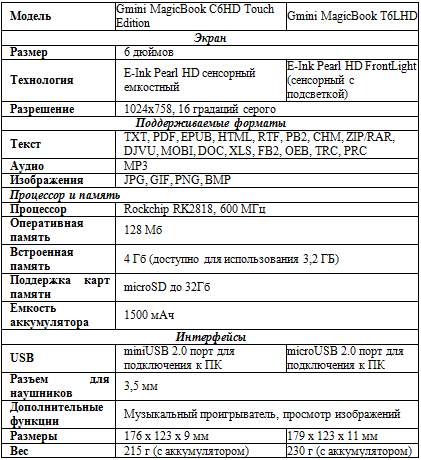 Компания Gmini объявлила о старте продаж новых устройств для чтения электронных книг MagicBook C6HD Touch Edition и Gmini MagicBook T6LHD. Как отмечают в компании, её тонкие и легкие новинки отличаются компактностью, отличной эргономикой, повышенной автономностью, поддержкой множества форматов файлов, а благодаря экрану E-Ink Pearl HD класса А, ранее недоступному для устройств, поставляемым официально на российский рынок, новые ридеры не уступают качеством отображения текста и иллюстраций устройствам ведущих мировых брендов.