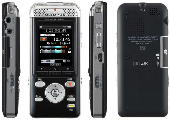 Японская компания Olympus представила у себя на родине новую топовую модель цифрового диктофона Voice-Trek DS-901, оснащенного помимо стандартных высококачественных аудио характистик, еще и 2-дюймовым цветным ЖК-дисплеем и поддержкой беспроводных Wi-Fi сетей, благодаря чему новинка может дистанционно управляться с помощью смартфона.
