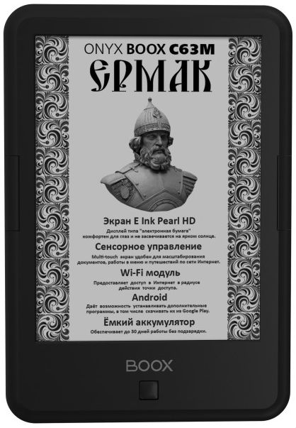 ONYX BOOX C63M Ermak и ONYX BOOX C63SM Bering, выполненные в компактных и легких корпусах, поддерживают все популярные текстовые и графические форматы файлов, а операционная система Android, на базе которой они работают, позволяет пользователем самостоятельно устанавливать дополнительные приложения. Помимо этого в модели ONYX BOOX C63M Ermak имеются встроенный Wi-Fi-модуль и предустановленный магазин приложений Google Play, что дает возможность устанавливать дополнительное программное обеспечение.