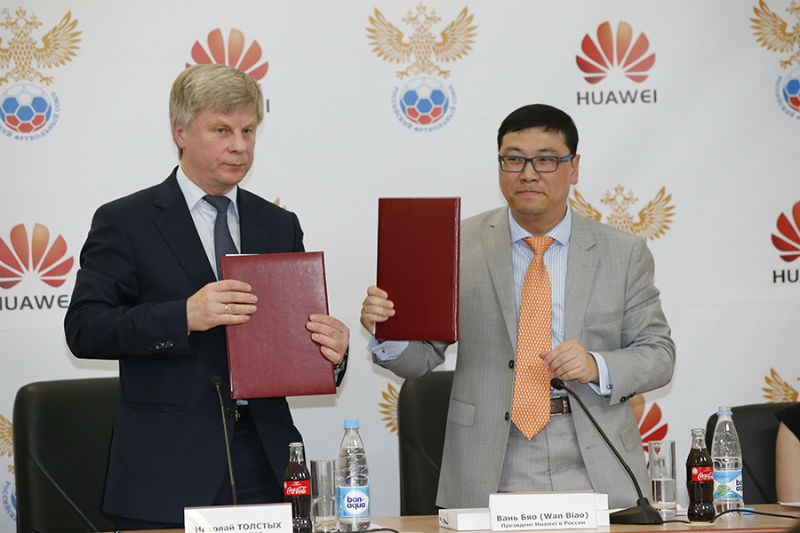 Компания Huawei сообщила о том, что стала официальным партнером Российского футбольного союза и спонсором сборной России по футболу. Спонсорский договор заключен на срок с мая 2014 по июль 2016.
