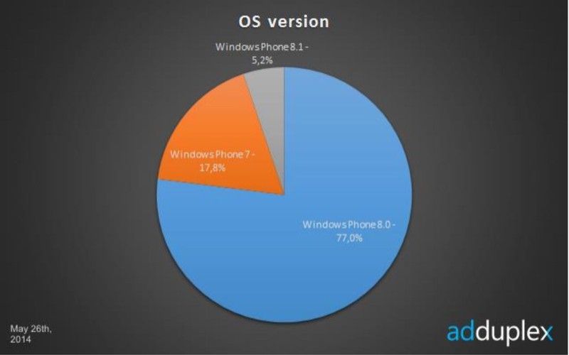 По данным AdDuplex, ОС Windows Phone 8.1 быстро распространяется на рынке и в настоящий момент установлена уже более чем в 5% от общего количества смартфонов работающих под управлением актуальных версий ОС от Microsoft. Это скорость была обеспечена как подключением новых аккаунтов разработчиков, так и выходом на рынок моделей Nokia Lumia 630 и Lumia 635 с предустановленной новой версией ОС.