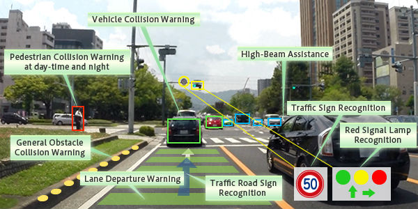 В Toshiba TMPV760 поддерживается реализация нового поколения Современной системы содействия водителю (ADAS). Представленная новинка поддерживает такие стандартные функции системы, как AEB (Автономная система экстренного торможения), TSR (Система распознавания дорожных знаков), LDW (Система предупреждения о смене полосы движения), LKA (Вспомогательная система удержания на полосе движения), HBA (Вспомогательная система переключения дальнего света), FCW (Система предупреждения переднего столкновения), а также новые системы – TLR (Система распознавания сигналов светофора) и AEB для пешеходов (как днем, так и ночью), которые станут частью программы тестирования Euro NCAP в 2018 году.
