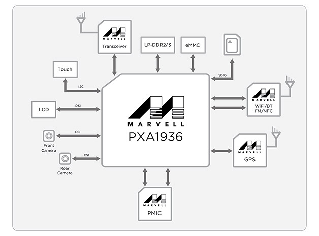 Компания Marvell представила два новых чипсета с поддержкой 64-битных инструкций и встроенного пятирежимного LTE модема – четырехъядерный ARMADA Mobile PXA1908 и ARMADA Mobile PXA1936, предназначенные для массового рынка и высокопроизводительных смартфонов, соответственно.