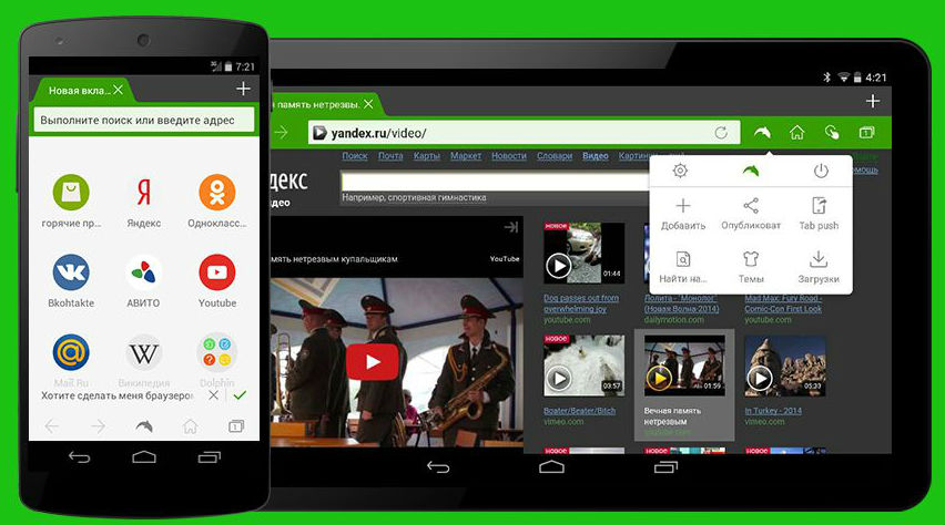 Браузер также поддерживает интеграцию с популярными приложениями и облачными сервисами хранения данных, такими как Facebook, Dropbox и Evernote. Важной чертой Dolphin является поддержка Flash без установки дополнительного программного обеспечения.