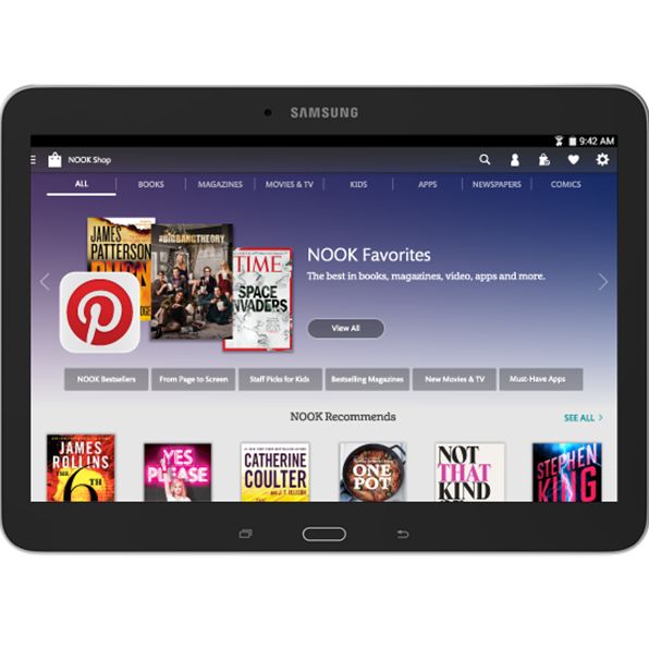 Компания Barnes & Noble продолжила расширение ассортимента брендированных планшетов, которые создаются в сотрудничестве с Samsung. Вслед за 7-дюймовой моделью, появилась и 10-дюймовая. Устройство называется Samsung Galaxy Tab 4 Nook 10.1 и построено как можно догадаться на базе Samsung Galaxy Tab 4 10.1. Стоимость планшщета в фирменном магазине Barnes & Noble составляет 300 долларов.