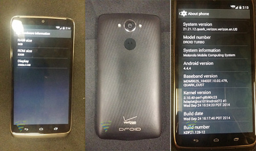 На данный момент известно, что смартфон Motorola Droid Turbo получит 5,2-дюймовый сенсорный дисплей с разрешением 2560 x 1440 точек, операционную систему Android 4.4.4 KitKat и процессор Qualcomm Snapdragon 805. Объем оперативной памяти составит 3 ГБ, а встроенной - 32 ГБ. Также смартфон получит мощную 21-Мп камеру с двойной светодиодной вспышкой и аккумулятор емкостью 3900 мАч. Официальный анонс Motorola Droid Turbo должен состояться на следующей неделе - 28 октября.