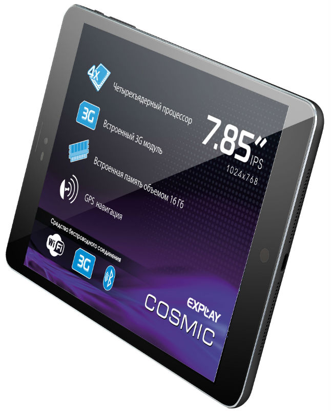 Линейка 7,85 дюймовых планшетов от российской компании Explay пополнилась новой моделью Explay Сosmic, работающей на базе операционной системы Android 4.4 KitKat и оснащенной четырехъядерным процессором MTK8382 с тактовой частотой 1,3 ГГц.
