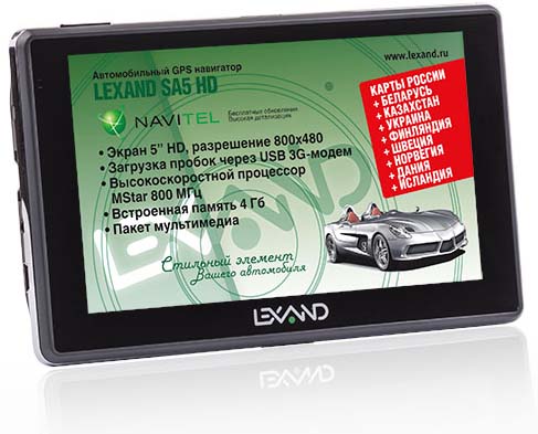 Компания «Лаборатория «ЛЕКСАНД» представила линейку классических GPS-навигаторов – Lexand SA5. Она включает четыре 5-дюймовые модели (SA5, SA5+, SA5 HD и SA5 HD+). Среди главных особенностей новинок – возможность загрузки данных о пробках через Bluetooth (в случае моделей SA5+ и SA5 HD+) или через внешний 3G-модем с интерфейсом USB. Lexand SA5 – первые на российском рынке классические навигаторы на Windows CE 6.0, которые официально совместимы с 3G-модемами.
