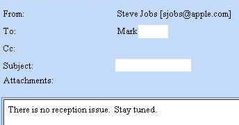 Well his statement had a little addendum to it, "Stay tuned." What could that mean? Well speculation has it that Apple are releasing a quick firmware update today to address the issue so Jobs' comments could be taken in that light i.e. we've got a fix so there is no issue. Hopefully that proves to be the case for the many people who are experiencing this problem. However, the big worry amongst mnay customers is that this is a hardware issue, for which there would be no easy fix beyond fitting a bumper or other case. That will be fine for some, but others are likely to think it unreasonable to expect them to employ a workaround for a brand new device that has cost them an arm and a leg.
