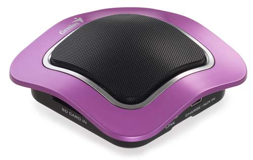 Кнопки включения, паузы и возобновления воспроизведения, переключения на предыдущий или следующий трек, а также регулировка громкости расположены на боковых панелях плеера. Колонка Genius SP-i400 укомплектована встроенной литиевой батареей, которую можно подзаряжать через разъем USB. При этом емкости аккумулятора достаточно для непрерывного прослушивания музыки на протяжении 8 часов. В комплект поставки входит чехол для хранения и перевозки, а также кабель для соединения с источником звука и подзарядки устройства. Доступны два варианта расцветки Genius SP-i400: пурпурный и металлик. Ориентировочная стоимость устройства составляет 1 200 рублей.