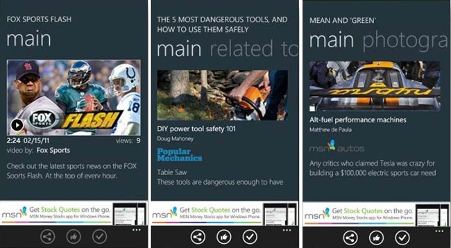 The content is very blokish with car themed content from MSN Autos such as reviews, slideshows, etc. There's 'how-to' guides from the likes of Esquire and Popular Mechanics; fitness and health information from Fitbie, Fox Sports Flash, Men's Health, etc. Tech news comes from MSNBC, LIFE, Popular Mechanics and TheSmokingJacket.com.