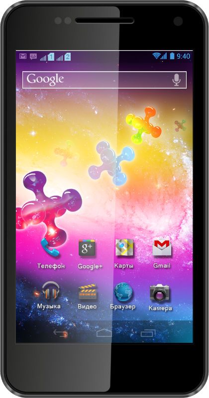Представленная новинка отличается отсутствием каких-либо аппаратных кнопок на передней панели и оснащается 1 ГГц двухъядерным процессором MediaTek MT6577 (Cortex-A9), поддержкой работы в 3G/HSPA сетях, 8 МП камерой с возможностью HD видеозаписи, а также двумя слотами под SIM карты, позволяющие принимать с них два звонка одновременно.