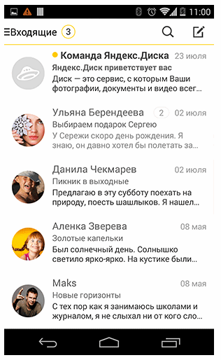 Новая Яндекс.Почта также позволяет работать с письмами в офлайне - там, где нет Wi-Fi или сигнала сотовой сети. Она автоматически сохраняет письма на устройстве и показывает их в любой момент. В офлайне можно читать почту, писать ответы, раскладывать письма по папкам. Как только пользователь снова подключится к сети, все изменения синхронизируются с сервером. Скачать новую Яндекс.Почту для Android можно в интернет-магазине Google Play или в Яндекс.Store.