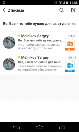 Для того чтобы определить, какой файл - картинка, таблица, документ - приложен к письму, открывать сообщение необязательно. Достаточно посмотреть на картинку-превью. Часто бывает, что нужно быстро найти в почте определенное письмо. В новой Яндекс.Почте для Android появились быстрые фильтры: с их помощью можно отыскать, например, все письма с электронными билетами или бронями отелей, не напечатав ни слова. Распознать тип письма Яндекс.Почта может благодаря технологии «Маркер».