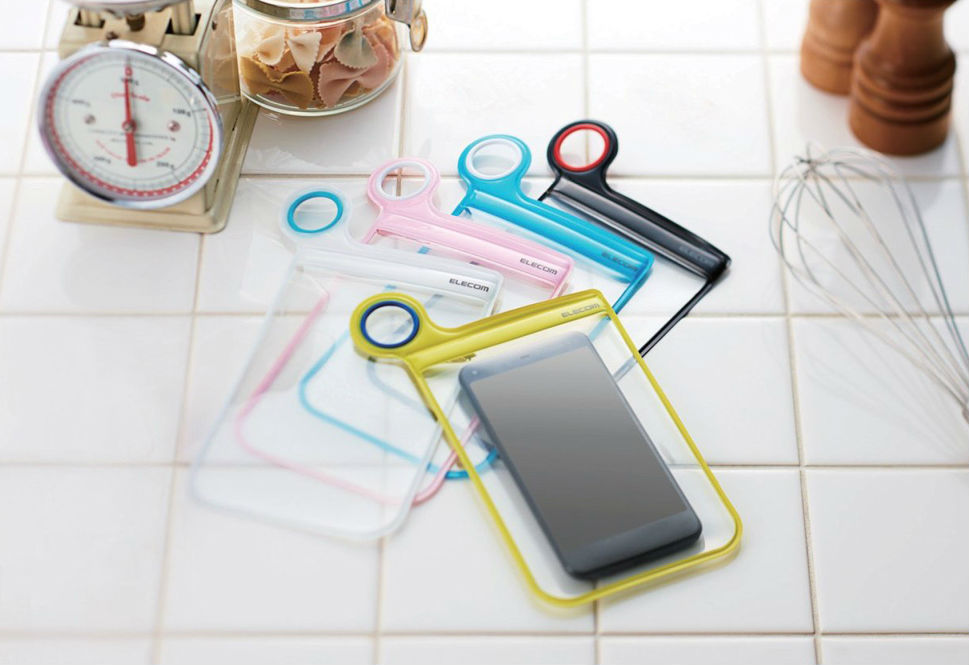 Японская компания ELECOM сообщила о выпуске своего нового аксессуара, выполненного в виде прозрачного чехла на двойной застежке с кольцом, который делает возможным пользование незащищённым смартфоном мокрыми руками, предоставляя ему защиту от брызг воды.