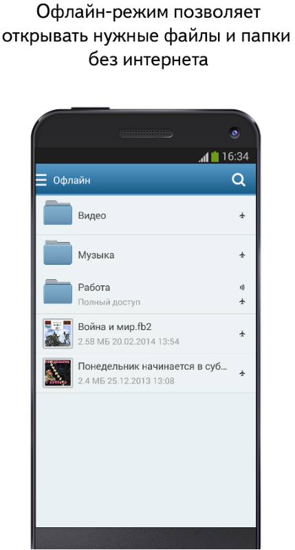 В версии для Android офлайн-режим доступен не только для файлов, но и для папок. Так, можно перевести в этот режим сразу всю папку с документами для поездки — копиями билетов, заметками и путеводителями. Это проще, чем заниматься каждым файлом в отдельности. Удобно также завести одну офлайн-папку и складывать туда всё, что может понадобиться без интернета, — через веб-сервис или приложение для компьютера. При подключении к интернету приложение автоматически загрузит эти файлы в память устройства, и они станут доступны офлайн. Скоро такие же возможности появятся и в приложении для iOS.