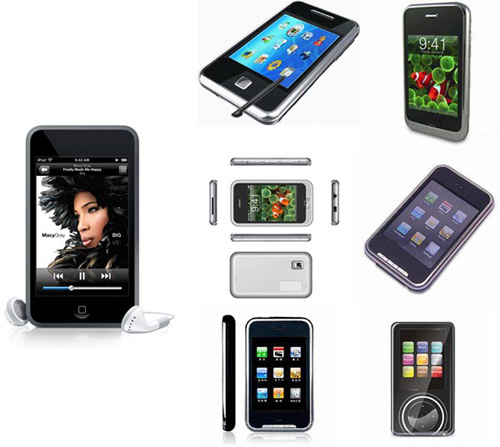Их нелегко отличить от оригинала: дизайн, компоновка – все такое же. Дисплей встречается и 2-дюймовый QVGA, и 1.8 QCIF+, в этом случае вокруг него делается рамка. Главным отличием остался Click Wheel – это по-прежнему обычная несенсорная навигационная клавиша. ![]() Клоны iPod Touch были готовы еще задолго до выхода модели, только тогда они назвались клонами iPhone. ![]() Их не делают один в один: они поменьше размером, используются другие иконки. Никаким Multi-touch, естественно, не пахнет – это обычные сенсорные дисплеи. Не очень веря в удобство своих детищ в плане управление пальцами, производители часто вкладывают в комплект стилус. Любопытно, что первые iPhone/Touch-клоны уже продаются в Европе. У кого не получается копировать плееры, копирует логотип. ![]() SamsungЗа последнее время плееры этой марки стали довольно популярны в Азии, что не могло не повлечь за собой их массового копирования. Началось все в 2005 с первой по-настоящему удачной корейской серии T5/T6. Эти миниатюрные плееры на AAA-батарейках копировались массово и в огромных количествах, года на полтора породив новый форм-фактор, аналогично nano в 2006-2007 гг. ![]() Позже клонированию подвергались модели U2, ![]() F1, ![]() причем последняя была просто невероятно популярна у китайских любителей копирования. T7 также не обошла эта судьба. ![]() В 2007 году на рынке появлялись клоны Z5 (не так много), ![]() T9 (немало), ![]()