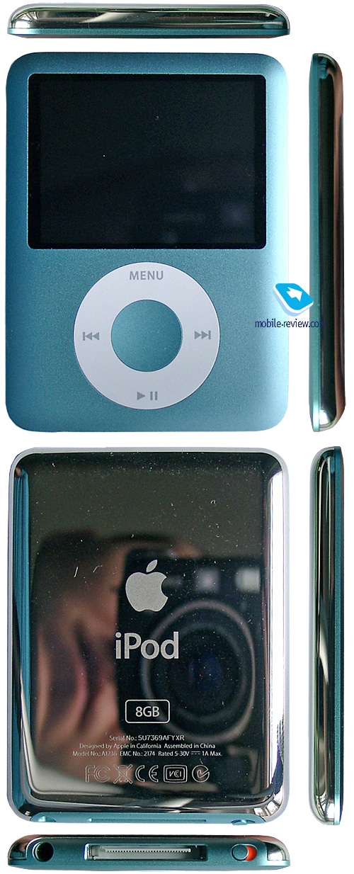 Общая оценка: ХорошоЧастотная характеристика![]() Уровень шума![]() Выводы и впечатленияПомните из геометрии формулировку «что и требовалось доказать»? Поменяв форму, Apple сохранила узнаваемость плеера и обеспечила преемственность реализации всех функций. Добавившийся просмотр видео безболезненно вписался в общую концепцию плеера, словно всегда там был. Из приятных дополнений отмечу вспомогательную область меню, она его сильно оживила. В силу того, что Apple ориентирует свои плееры на контент из собственного магазина и с нескрываемой неприязнью смотрит на обмен файлами, вряд ли можно было ждать от нового плеера поддержки Bluetooth. Хотя, конечно, ничего не мешает обеспечить работу с беспроводными наушниками, оставив за бортом обмен файлами. Цена на плеер с восемью гигабайтами памяти в Америке установлена в 200 долларов, у нас он, конечно, будет продаваться дороже, но не сильно. Хорошие и емкие плееры постепенно становятся доступнее, это следствие повысившейся конкуренции на рынке флэш-моделей с поддержкой видео. Пользователям, понятное дело, это только на руку. Обкатанность всех решений дает о себе знать, плеер практически лишен недостатков, хотя в глазах большинства российских (и не только) пользователей его главный недостаток – прочная привязка к iTunes. Понятно, что сейчас ее довольно легко преодолеть, но далеко не каждый станет этим заниматься. Для кого-то неприятным сюрпризом может стать уменьшенный ClickWheel, но я бы не стал о нем плохо отзываться: принцип работы остался тем же, а к новым размерам быстро привыкаешь. Нарекания вызывает, пожалуй, только переключатель блокировки управления, ума не приложу, зачем его понадобилось уменьшать и переносить. В остальном плеер – типичный бестселлер от Apple, каковым он, собственно, и задумывался. ![]() Технические характеристики: