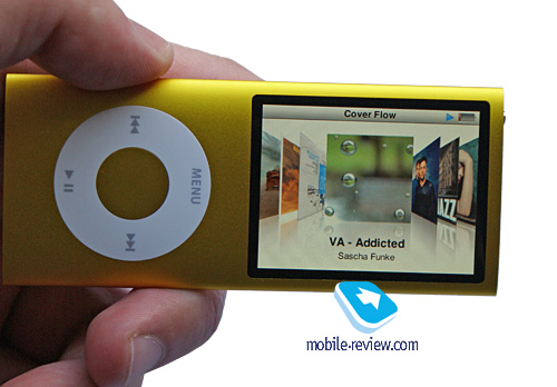 УправлениеСтарое доброе кликательное колесо не утратило своего очарования ни на йоту, про него написано уже куча всего, и на нашем сайте описание управления вы найдете во многих статьях Саши Дембовского, ссылки на них - в конце статьи. Ну а если среди читателей есть люди, не знакомые с такой системой управления, то вкратце расскажу. По сути это пятипозиционный джойстик с сенсором, клавиша посередине отвечает за подтверждение действия и вызов некоторых пунктов меню, Menu позволяет вернуться на уровень назад или же в меню при нажатии и удержании. Она же отвечает и за включение/выключение плеера, назначение остальных клавиш, думаю, легко понять, глядя на фотографии. На верхнем торце, как я уже сказал, есть клавиша блокировки, она сделана не совсем в стиле iPod. Скорее, она сделана а-ля MacBook. В общем, это мое субъективное мнение, регулятор легко подцепить, хорошая такая кнопочка. ![]() С управлением плеером легко разобраться всем старым любителям iPod, вновь прибывшим рекомендуется заглянуть в мануал. Например, может возникнуть вопрос, как при помощи сенсора быстро перейти от пункта А в пункт Б в рамках одной длинной композиции. Делается это очень просто, но для неподготовленного пользователя может остаться тайной за семью печатями. Секрет в умной центральной клавише, просто при нажатии на нее появляются подменю с возможностью оценки композиции, перехода к произвольному воспроизведению, альбомам, тут же скрывается и быстрая перемотка. Длительное нажатие на центральную клавишу вызывает немножко иное подменю с возможностью добавить композицию в плей-лист On-the-go, просмотреть альбом, где находится исполняемая композиция, или все песни этого артиста. ![]() Еще одно новшество, связанное с акселерометром, - управление потряхиванием. Трясти плеер нужно довольно энергично, главное - резко, не плавно. Такое движение включает режим Shuffle, если затем вы будете потряхивать плеер, то происходит перескок на следующую композицию. Опять мы имеем дело с агрессивным оскалом маркетинга, ибо и без этих резких движений можно смело обойтись. GeniusПро эту функцию подробно написал Алексей Дорожин вот в этой статье, не вижу смысла останавливаться на ней в обзоре. Тем более, работает "гений" только с композициями, купленными в iTunes Store, насколько я понимаю. У меня таких нет. Время работыЭтот параметр крайне важен для "чистого" плеера. Объясню почему: во времена, когда слушать музыку можно уже практически на чем угодно, должно же у чистопородных музыкальных устройств сохраниться хоть какое-то оправдание покупке? В общем, заявленные для Nano четвертого поколения характеристики такие: до суток при полной зарядке для музыки или же четыре часа видео. Заряжается Nano все так же, при помощи кабеля, который подключается к компьютеру. Я использовал сетевой адаптер для iPhone, так оно быстрее и надежней. Хотя на официальном сайте и написано, что при подключении к USB наличествует быстрая зарядка, когда за полтора часа аккумулятор заполняется на восемьдесят процентов, тестировать эту "быструю" зарядку у меня желания не было. Ибо за полтора часа с адаптером, который воткнут в розетку, батарея плеера заряжается полностью (и даже слегка быстрее). Если говорить о USB, то полный заряд занимает три часа. ![]() Я провел банальный эксперимент: подключил штатные наушники, выкрутил громкость "до упора", зарядил 