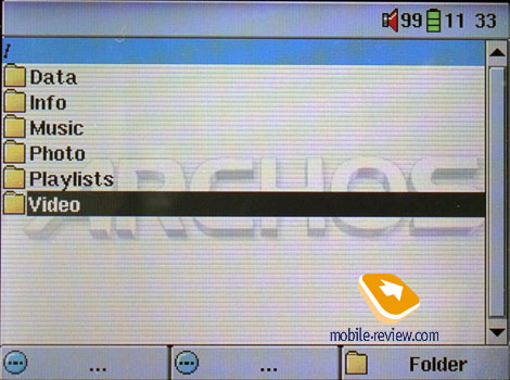 Разделы Видео, Музыка и Фотографии выводят на дисплей содержимое соответствующих папок на жестком диске аппарата, после чего пользователь может выбрать файлы и папки для просмотра или прослушивания. При работе с музыкой используются данные фирменной системы каталогизации ARClibrary, подробнее о которой чуть ниже. Примечательно, что при наведении курсора на видеофайл, если его кодек «знаком» AV420, на дисплей выводится небольшой случайный кадр из фильма. Из подобных мелочей и составляется удобный и ориентированный на пользователя интерфейс. Если кадр не выводится, то кодек, которым сжат файл, не знаком плееру. Это не всегда значит, что воспроизведение невозможно. К сожалению, встречаются файлы, воспроизвести которые аппарат, даже с самой свежей версией программной прошивки, воспроизвести не может. Как правило, это ролики, созданные либо очень давно, либо совсем недавно. Эту проблему также можно решить – их просмотр возможен после перекодировки с помощью программ программами VirtualDub и MP4Translator, поставляемых с Archos AV420.