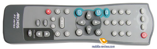 Пульт РМА430 полностью повторяет таковой у «прародителя», AV420. Он имеет классическую эргономичную форму и удобно лежит в руке. Корпус пульта выполнен из гладкого серого пластика, качество сборки на высоте и соответствует общему уровню устройства. На пульте продублированы все клавиши аппарата и присутствует множество дополнительных кнопок: от девяти цифровых до mute. Наличие пульта значительно облегчает просмотр фильмов на внешнем дисплее.