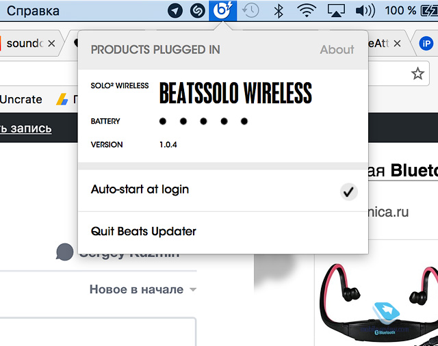 Наушники работают с программой Beats Updater, для использования нужно подключить Solo кабелем и перейти по ссылке вот здесь. Используется веб-интерфейс, можно изменить название наушников, проверить версию ПО, как видно, моя модель имеет последнюю версию.
