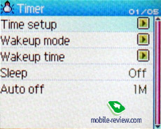 Timer. Раздел настроек, связанных с исчислением времени. Позволяет установить системное время, настроить будильник и отрегулировать время автоматического отключения в режиме простоя и во время работы (видимо, эта возможность, вместе с будильником, предназначена для тех, кто спит в наушниках).