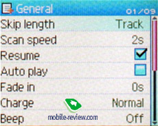 General. Общие настройки: скорость перемотки, режимы возобновления воспроизведения с места остановки и автоматического начала воспроизведения при включении, плавное повышение громкости. Также здесь можно назначить дополнительные функции на кнопки воспроизведения и записи (практически не встречается в плеерах, является дополнительным преимуществом). Пользователь также может выбрать скорость зарядки аккумулятора, а также сбросить все настройки на фабричные значения.