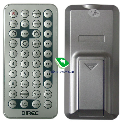 Комплектный пульт ДУ выполнен из серебристого пластика и имеет плоскую форму, а-ля упаковка таблеток. Качество исполнения пульта находится на хорошем уровне, зазоры равномерны, дефекты литья отсутствуют. Пульт позволяет напрямую выбирать номер файла или главы, программировать воспроизведение и работать с другими функциями, минуя меню. В качестве источника питания пульта ДУ используются две батареи типа ААА.