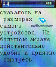 С просмотром текстовых файлов у плеера проблем не возникает, файлы с кириллическим текстом в кодировке Юникод распознаются без каких-либо шероховатостей. Присутствуют функции установки закладок, автопролистывания и поиска страницы.