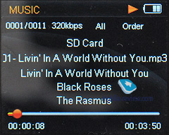 Режим портативного аудиоплеера (DAP)Плеер не требует установки программ синхронизации, более того, такая возможность не реализована производителем. При запуске плеера сканируется внутренняя память и составляется база тэгов, поиска по ней нет. Зато есть список избранных треков. Устройство определяется как два внешних накопителя (если вставлена карта памяти), итого можно получить до 34 гигабайт музыки, пусть и разбитых на два "раздела". Управление неудобное. Пять клавиш на лицевой панели тугие, удручающе небольшие и никак не подписаны, на дисплее подсказок не появляется. Привыкнуть к этому можно, но путаница как поначалу, так и после адаптации к такой странной системе обеспечена. ![]() Единственная отрада - кнопки перемотки и начала/приостановки воспроизведения на верхнем торце плеера. Они после недолгого привыкания идентифицируются на ощупь и упрощают управление устройством, находящимся в кармане. Регулировка громкости осуществляется аналоговым колесиком. Соответственно, оно не блокируется рычажком Hold. Та же ситуация с кнопкой включения/выключения. Впрочем, кнопки настолько тугие, что не нажимаются самопроизвольно. Чего нельзя сказать о самом рычажке блокировки - он достаточно легко принимает обратное исходному положение. ![]() ![]() Интерфейс аскетичный, напоминает чем-то iPod. Пункты меню не имеют никаких пиктограмм, даром что у плеера цветной экран. Можно менять фоновый рисунок, есть эквалайзер, настройки последовательности воспроизведения, повтора. Никаких излишеств, простая функциональность для воспроизведения музыки.