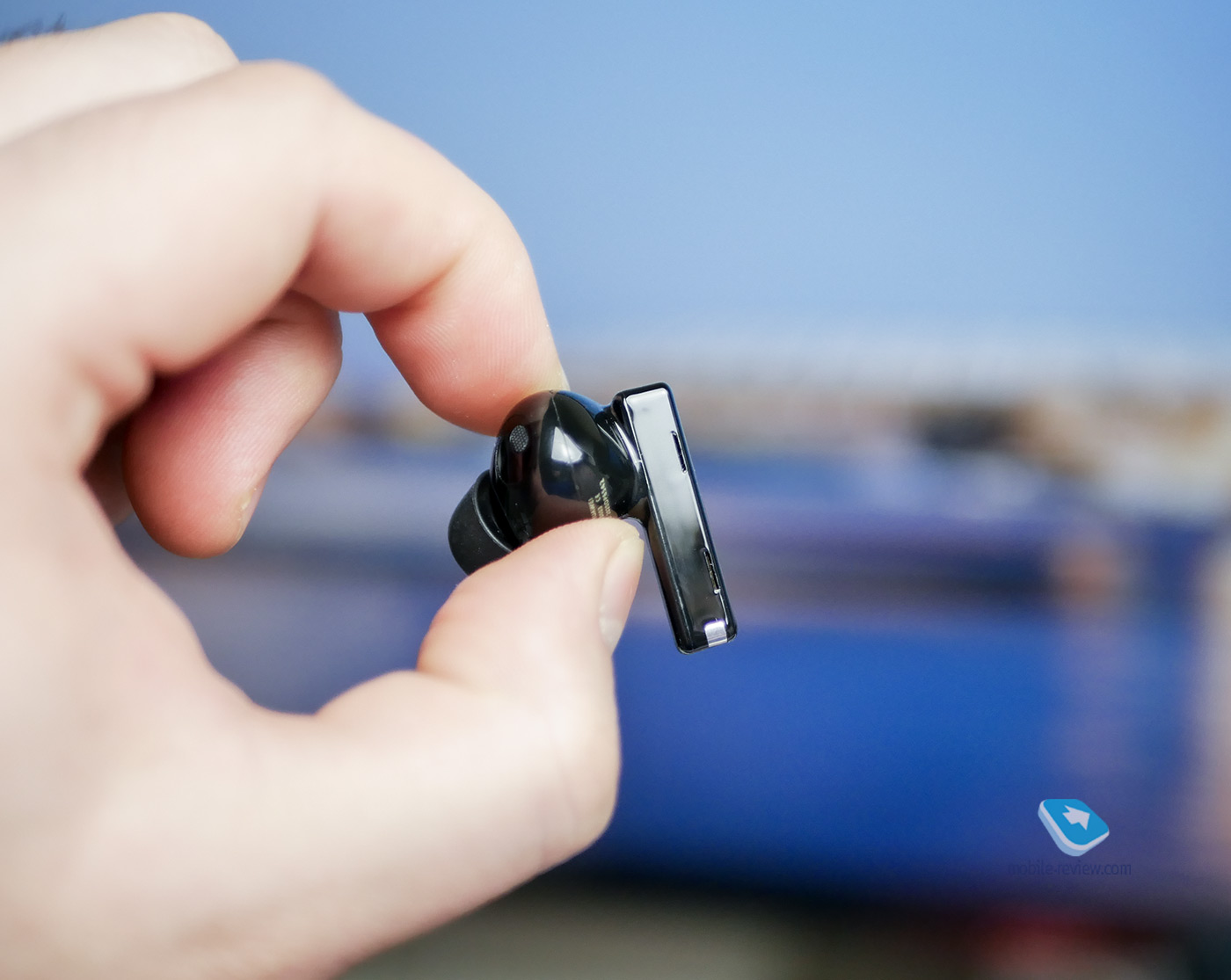 А еще на одной из граней была полупрозрачная светлая вставка. Относительно наушника она крупная. Каково ее назначение, я не понял. Но выглядела эта вставка инородно. Кусок пластика держался так, будто его приклеили намертво. Самое смешное, что в итоге я ее каким-то образом поддел и сковырнул. Может быть, так нам обозначили сенсорную область, мол, сжимать здесь.