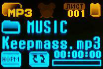 В режиме «mp3» отображается текущая папка, порядковый номер файла в папке, бегущая строка с названием трека (поддерживается отображение ID3 тэгов: название трека, исполнитель и альбом, русский язык отображается корректно), режим эквалайзера, режим повтора, прошедшее или оставшееся до конца трека время и относительная шкала времени. С помощью нажатия на колесико громкости можно получить доступ к информации о файле, системные сведения, а также к прикрепленному тексту.