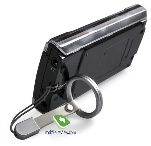В Корее Maycom активно использует эти функции в продвижении своих устройств, они часто продаются с курсами иностранных языков в комплекте. В России эта возможность менее востребована, подавляющее большинство потребителей не осведомлены о ней, хотя отдельным пользователям она может быть интересна. Стоит обратить внимание на один интересный аксессуар, входящий в комплектацию плеера. Это специальное колечко, оно заменяет традиционный шнурок для ношения плеера на шее, производитель резонно рассудил, что для этого плеер великоват. Колечко можно использовать двумя способами. Его можно надевать на палец и, таким образом, страховать плеер от падения из руки. А будучи вставленным в специальный паз, колечко служит в качестве подставки для плеера, позволяя ему стоять в почти вертикальном положении. В сочетании со встроенным динамиком это действительно превращает плеер в миниатюрный «центр цифровых развлечений», как это так любят писать в рекламных памфлетах. Будучи поставленным на стол, плеер может проигрывать музыку, показывать фильмы, передавать радиотрансляции, он превращается в некое подобие стационарного устройства. Кроме этого, кольцо можно надеть на палец, и в таком положении это позволяет более надежно держать его в руках при просмотре видео или чтении текста. В общем, это довольно полезный аксессуар, он очень хорошо дополняет плеер.