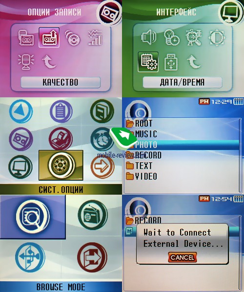 РадиоВозможности встроенного радиотюнера стандартны, это FM-диапазон 87,5 – 108 МГц, возможность занесения частот в память (до 20 станций), автоматическое сканирование диапазона. Есть возможность записи, форматом может выступать MP3 с настраиваемым битрейтом от 16 до 192 кб/с или TVF (Telechips Voice File) с битрейтом 6 кб/с, последний больше подходит для записи речи. В качестве дополнительных возможностей для радио можно назвать программируемую запись по таймеру, хотя эта функция уже начала появляться и в недорогих устройствах. XZ-22 предоставляет возможность запрограммировать до трех записей одновременно, пользователь может задавать время записи, частоту, с которой она будет вестись, ее продолжительность. Имеется несколько неудобств, во-первых, нельзя задать дату записи, только время, минимальная продолжительность записи – 5 минут, иногда это много, шаг стройки продолжительности тоже 5 минут, он слишком большой. Нет возможности периодической записи, например, ежедневной, настройки записи по дням неделям. В целом приходится признать, что программируемая запись у XZ-22 реализована не на самом высоком уровне. ЗаписьMaycom традиционно ответственно подходит к реализации функции диктофона в своих аппаратах, в особенности, в функциональном плане. В частности, XZ-22 имеет в активе: